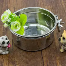 Details About Stainless Steel Hang On Bowls Metal Dog Crate Cage Food Water Bowl Animal Run T