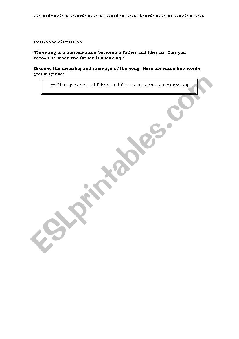 English Worksheets Song Father And Son By Cat Stevens