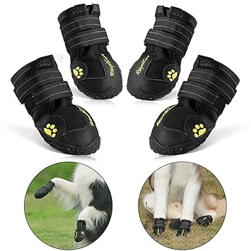 Royalcare Protective Dog Boots Set Of 4 Waterproof Dog Shoes For Large Dogs Black