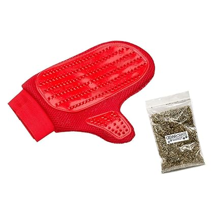 Four Paws Bundle Magic Coat Red Love Glove Cat Care Grooming Mitt With Catnip