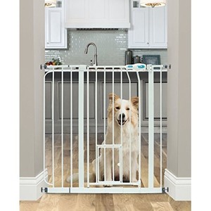 Confine your pet safely to one area of the home with this super wide walk through pet gate.