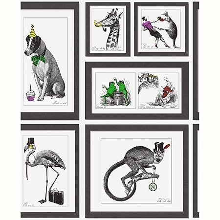 Holden Decor Mad Dogs Framed Animals Wallpaper Multi 97921