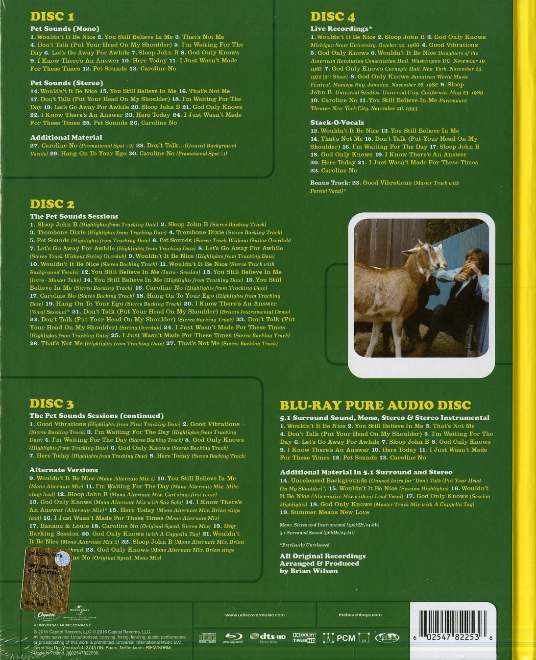 Capitol has since been waiting for the day to recognize the 50th anniversary of pet sounds culminating in a five disc collectors edition box set comprising four cds and one blu ray. The beach boys 1966 album pet sounds celebrates its 50th anniversary this year and sde takes a look via this unboxing video at the brand new 4 disc deluxe book edition which comes with a 51 surround sound pure audio blu ray audio and contains 11 previously unreleased live tracks.